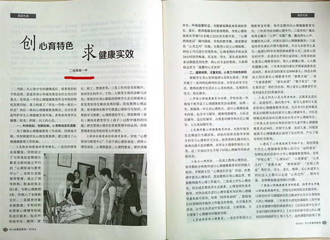 《中小学生素质教育》专题报道岳阳县一中心理健康教育工作