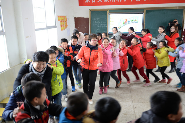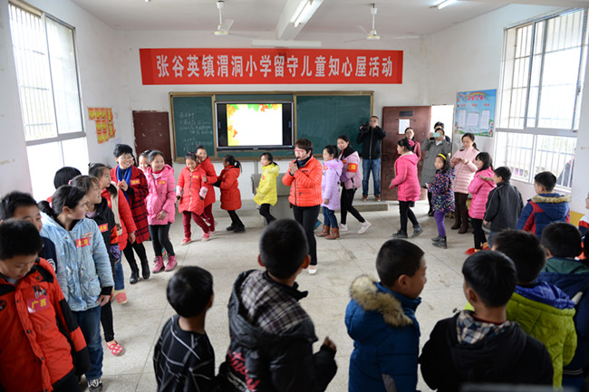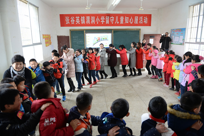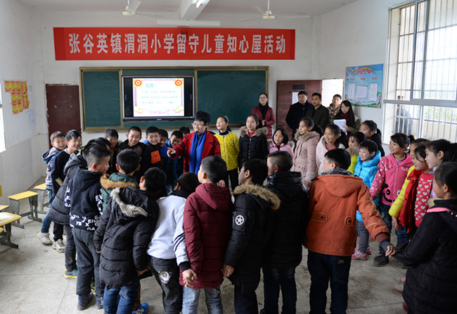 岳阳县一中心理辅导老师刘佳琴给留守儿童做团体辅导活动