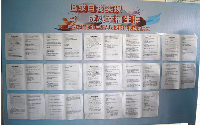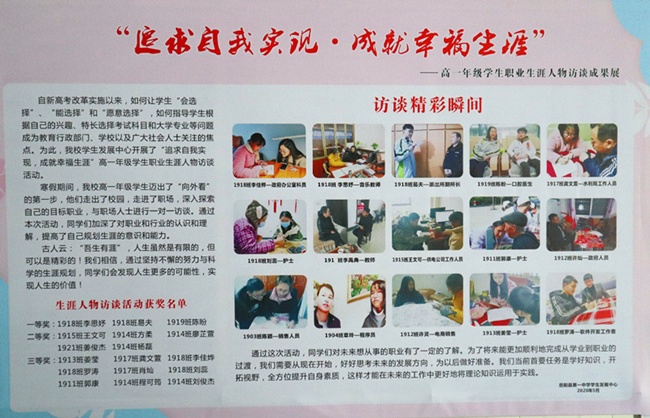 对高一年级生涯人物访谈优秀获奖作品进行示。发放心理知识宣传册,让同学们在轻松有趣的心理小知识中学会放松、减压的小妙招。