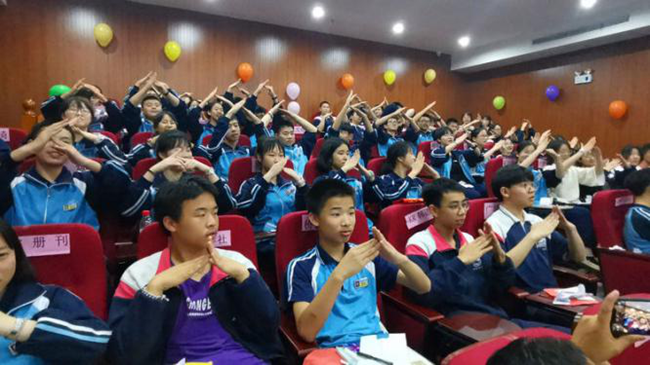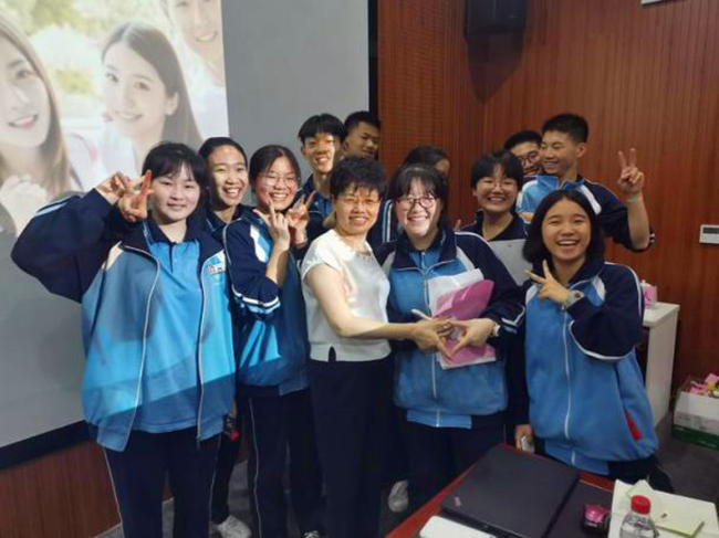 精彩的讲座后同学们纷纷找郭妈妈签名合照