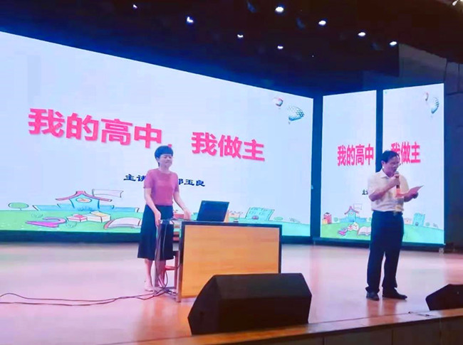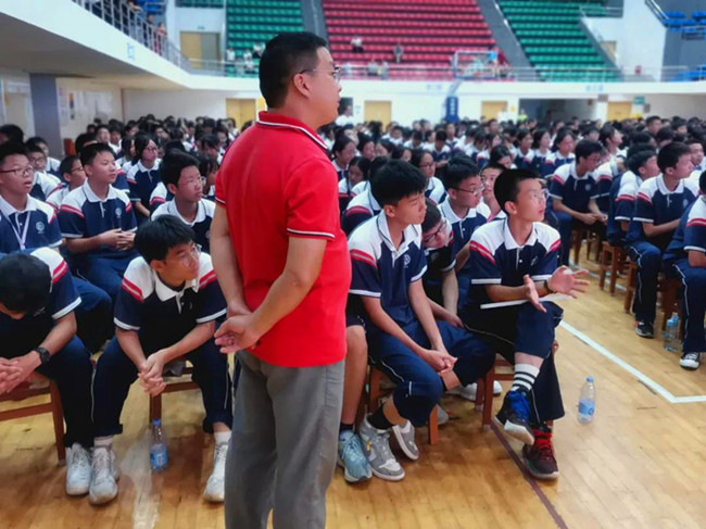 随后,郭玉良老师以提问方式,让同学们说出自己高中生活的三个关键词,结合同学们的分享、体验,郭玉良老师指出高中学习知识量大、综合性强、能力要求高、时间安排紧四大突出特点,并通过一系列活动,让同学们在高中时期能够树立目标、拒绝诱惑、马上行动、坚持到底,以实现自己的人生理想。