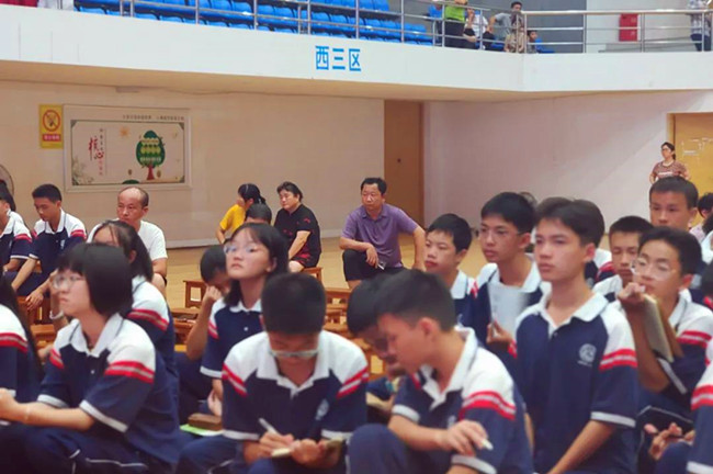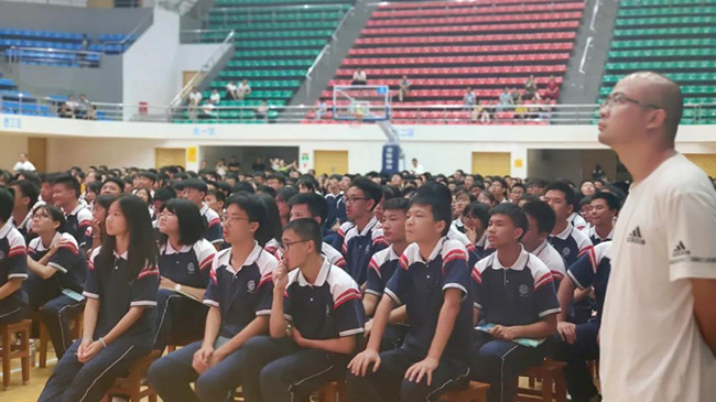 9月6日晚19时,学校主管德育工作副校长黄宇、学生发展中心主任许柳明、高一年级组长吴勇老师、高一各班班主任组织全体同学按时到达讲座现场。