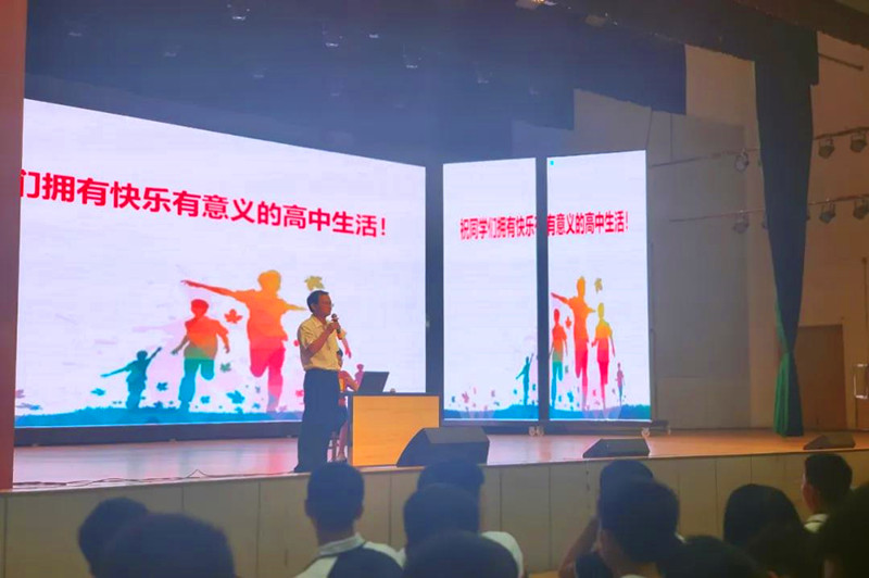 紧接着,郭玉良老师针对高一新生当下正处于青春期的生理和心理特点,用贴近生活的问题,鼓励学生去分享自己的快乐,并将这份快乐带给身边人;如果遇到不快乐,可以想办法调适,结合学生具体实例进行心理疏导。